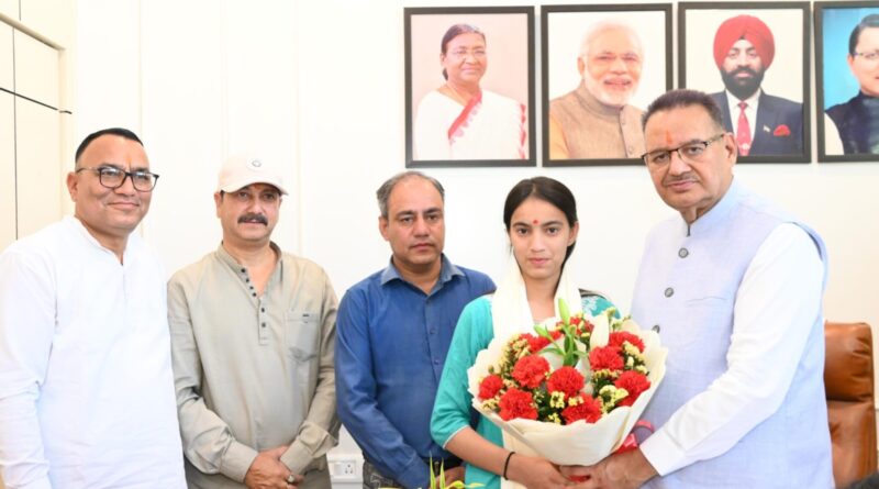 हाईस्कूल परीक्षा में प्रदेश में 15वीं रैंक लाने वाली साक्षी को कैबिनेट मंत्री गणेश जोशी ने किया सम्मानित