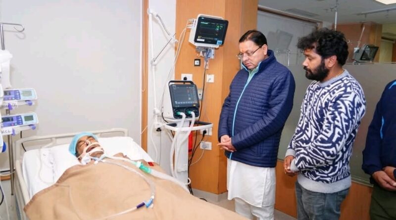 मुख्यमंत्री धामी ने मैक्स हॉस्पिटल में उपचाराधीन लोकगायक गोविंद दिगारी के पिता हिम्मत सिंह से की मुलाकात