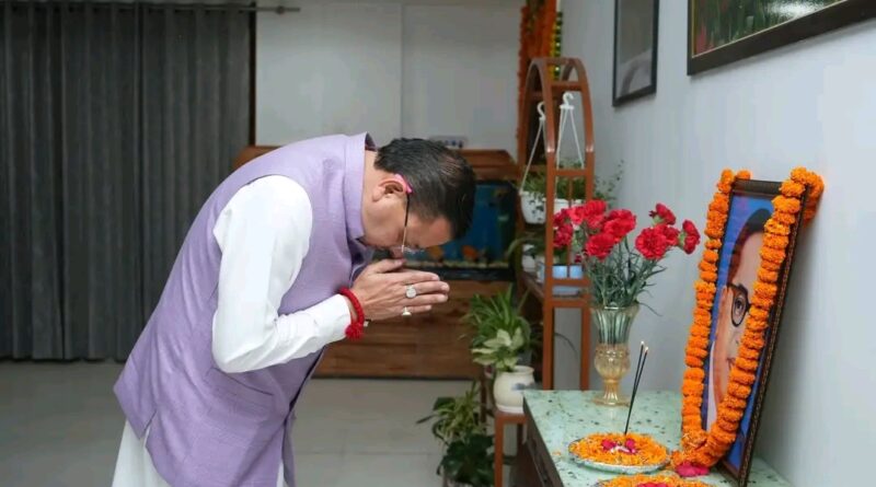 मुख्यमंत्री धामी ने भारतीय संविधान के निर्माता एवं ‘भारत रत्न’ बाबा साहेब डॉ. भीमराव आंबेडकर जी की जयंती पर पुष्प अर्पित कर किया भावपूर्ण स्मरण