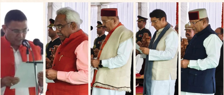 देहरादून : धामी सरकार ने लंबे इंतजार के बाद मंत्रिमंडल का विस्तार कर राजनीतिक समीकरणों को साधने की बड़ी कवायद की है। देहरादून स्थित लोक भवन में आयोजित शपथ ग्रहण समारोह में पांच विधायकों—मदन कौशिक, खजान दास, प्रदीप बत्रा, भरत चौधरी और राम सिंह कैड़ा—ने मंत्री पद की शपथ ली।