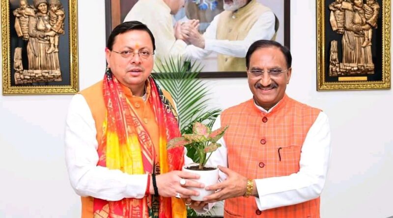 उत्तराखंड पूर्व मुख्यमंत्री रमेश पोखरियाल निशंक ने मुख्यमंत्री धामी से की भेंट September 23, 2025 HorizonNews देहरादून : मुख्यमंत्री पुष्कर सिंह धामी के शासकीय आवास पर भाजपा के वरिष्ठ नेता एवं प्रदेश के पूर्व मुख्यमंत्री रमेश पोखरियाल निशंक ने भेंट की। इस दौरान उनसे विभिन्न समसामयिक विषयों पर चर्चा हुई।