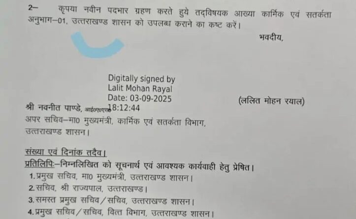 देहरादून : उत्तराखण्ड शासन ने आईएएस नवनीत पांडे को उनके वर्तमान पदभारों के साथ-साथ अपर सचिव, वित्त विभाग का अतिरिक्त प्रभार सौंपा है। कार्मिक व सतर्कता विभाग के अपर सचिव ललित मोहन रयाल की ओर से तीन सितंबर को इस आशय के आदेश जारी किए गए।