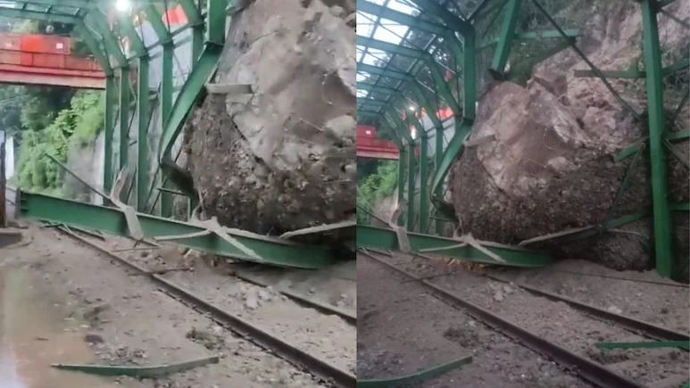 मंगलवार देर शाम करीब सात बजे अचानक मनसा देवी पहाड़ी से मलवा और बोल्डर गिरे, जो भीमगोडा स्थित काली मंदिर पर रेलवे ट्रेक पर गिरा और मलवा गिरने की यह घटना कैमरे में कैद हो गई. यह वीडियो सोशल मीडिया पर वायरल हो रहा है. मलवा आने से काली मंदिर पर रेल ट्रेक पर जो जाल बनाया गया था वह भी बुरी तरह से क्षतिग्रस्त हो गया है और रेलवे ट्रैक भी पूरी तरह से बाधित हो गया है. रेलवे ट्रेक हरिद्वार से मोतीचूर के बीच पूरी तरह से बाधित हुआ है जिसके चलते देहरादून से आने वाली और देहरादून की और जाने वाली करीब 10 ट्रेन का आवगमन प्रभावित हुआ है.