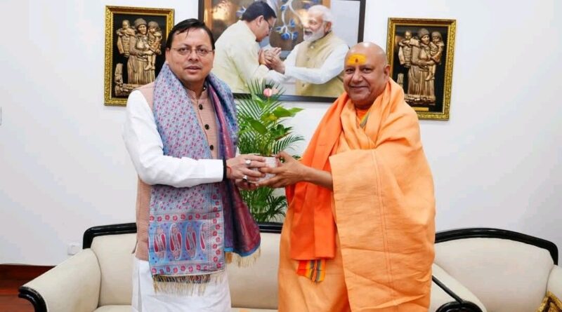 मुख्यमंत्री धामी से महामंडलेश्वर स्वामी यतीन्द्रानंद गिरि महाराज ने की शिष्टाचार भेंट, सामाजिक एवं राष्ट्रहित से जुड़े विभिन्न विषयों पर किया विचार-विमर्श