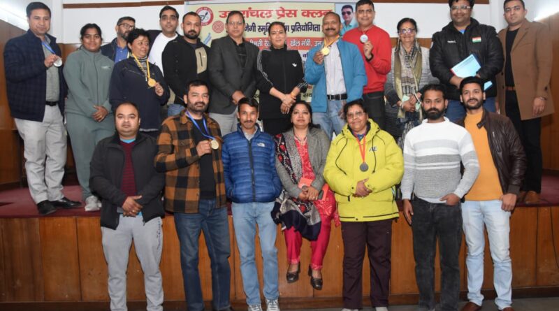 देहरादून : खेल मंत्री रेखा आर्या ने उत्तरांचल प्रेस क्लब द्वारा आयोजित अनिल नेगी स्मृति शूटिंग चैंपियनशिप 2026 के विजेताओं को सम्मानित किया। प्रतियोगिता में रश्मि खत्री महिला वर्ग और जितेंद्र नेगी पुरुष वर्ग में प्रथम स्थान पर रहे।