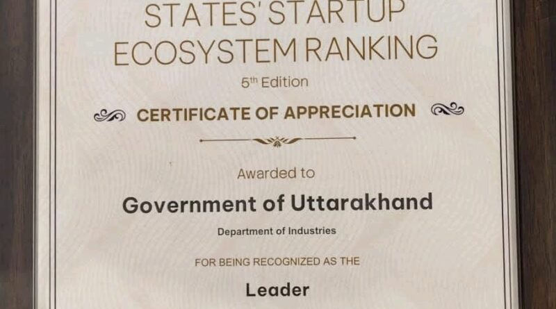 स्टार्टअप इंडिया रैंकिंग में उत्तराखंड बना ‘लीडर’, वाणिज्य एवं उद्योग मंत्रालय ने दिया सर्टिफिकेट