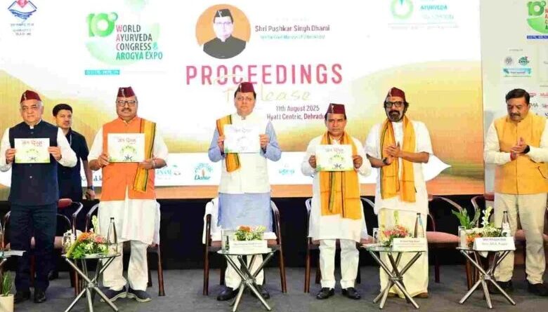 ओल्ड राजपुर स्थित एक होटल में 10वीं विश्व आयुर्वेद कांग्रेस एवं आरोग्य एक्सपो के प्रोसेडिंग विमोचन समारोह को संबोधित करते हुए मुख्यमंत्री  पुष्कर सिंह धामी ने कहा कि ये हमारे लिए अत्यंत गर्व का विषय है कि देवभूमि उत्तराखण्ड 10वीं विश्व आयुर्वेद कांग्रेस और आरोग्य एक्सपो का आयोजन करने में सफल रहा। साथ ही, अब हम उस ऐतिहासिक आयोजन की स्मृतियों और उपलब्धियों को संजोने के लिए प्रोसिडिंग का विमोचन कर रहे हैं। उन्होंने कहा कि ये मात्र एक दस्तावेज नहीं बल्कि ज्ञान, अनुभव और गहन विचार-विमर्श का सार तत्व है, जो आने वाले वर्षों में आयुर्वेद के क्षेत्र में अनुसंधान, नीति-निर्माण और जन स्वास्थ्य की दिशा तय करने में अपनी महत्वपूर्ण भूमिका निभाएगा।